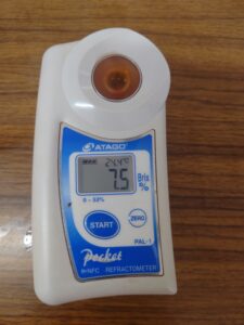 これをナイフで切って果汁を絞り糖度計で計測してみました。